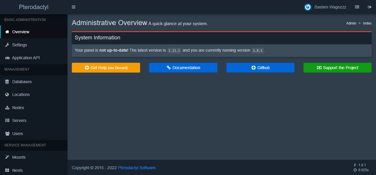 J'ai installé Pterodactyl sur une machine personnelle, où j'héberge plusieurs sortes de serveurs/applications, comme par exemple des serveurs de jeux Minecraft, Satisfactory ou encore des bots discord.